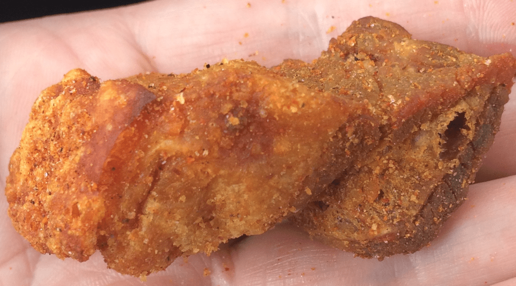 So, for the uninitiated (which I was), cracklins (also known as grattons if prepared a particular way) are pieces of pork skin, fat, and meat that have been flash fried until they are crisp, salty, spicy, greasy, sort of puffed full of air and not at all good for one’s cholesterol. But surprisingly tasty. To me it seemed almost like bacon “kernels” were popped into bacon “popcorn.”
