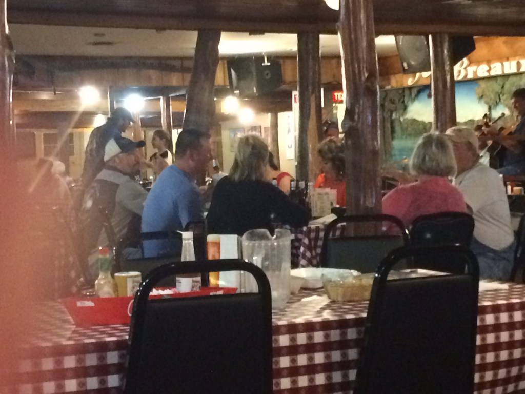 I arrived at Tunk’s Cypress Inn as the sun was setting. The parking lot was a large gravel area without any painted lines, with newer trucks and older cars lining up in orderly rows. It was comforting, a familiar aspect of small town life where expensive asphalt isn’t the highest priority. The restaurant is situated next to Kincaid Lake, and the wooden walkways had a lakeside dock feel to them.